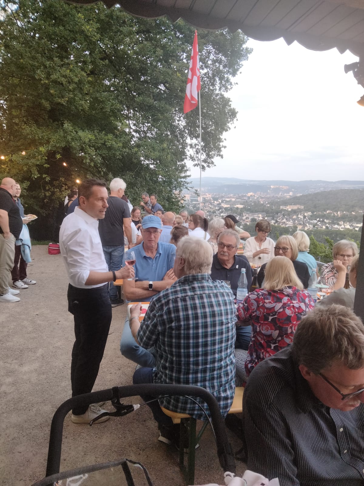 Deutlich über 100 Personen – darunter auch Oberbürgermeister David Langner, MdB Dr. Thorsten Rudolph sowie MdL Dr. Anna Köbberling – die den steilen Aufstieg nicht gescheut hatten, erlebten bei kurzweiligen Gesprächen in toller Atmosphäre den Abend gemeinsam mit den Aktiven des SPD OV  Güls. Die von MdB Dr. Thorsten Rudolph initiierte Verlosung einer politischen Berlin-Reise war zweifellos einer der Höhepunkte der Veranstaltung. Das Losglück hatte an diesem Abend die Gülser Obermöhn und langjährige Mitarbeiterin im Ortsvorsteherbüro, Anita Kirschner. Die Gülser SPD sagte DANKE an unseren Bundestagsabgeordneten für die Unterstützung und HERZLICHEN GLÜCKWUNSCH an Anita zum Gewinn der Reise.